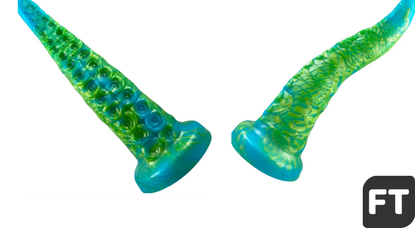 I recommend this if you’re looking for a fantasy dildo with textures that aren’t too protruding. It’s soft (but not squishy soft) at under 10A shore, so you can bend it without having too much trouble, but it’s not floppy.